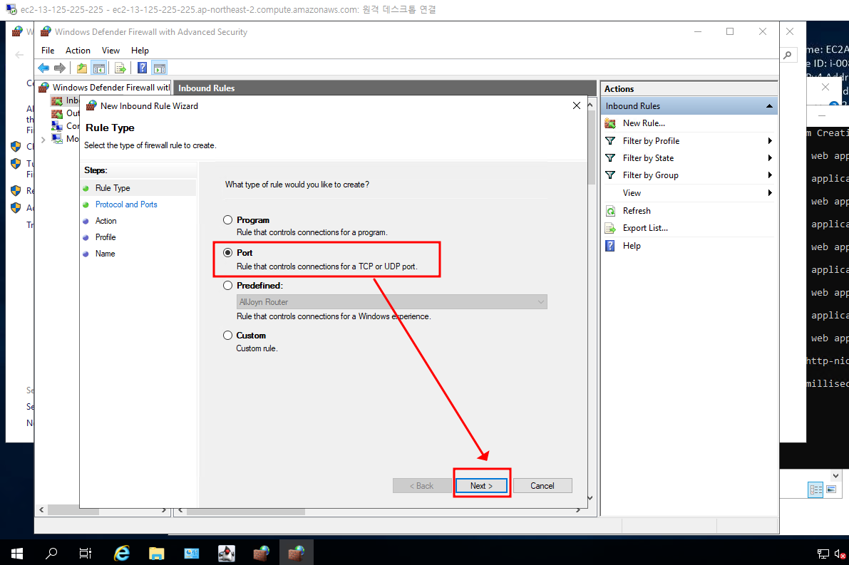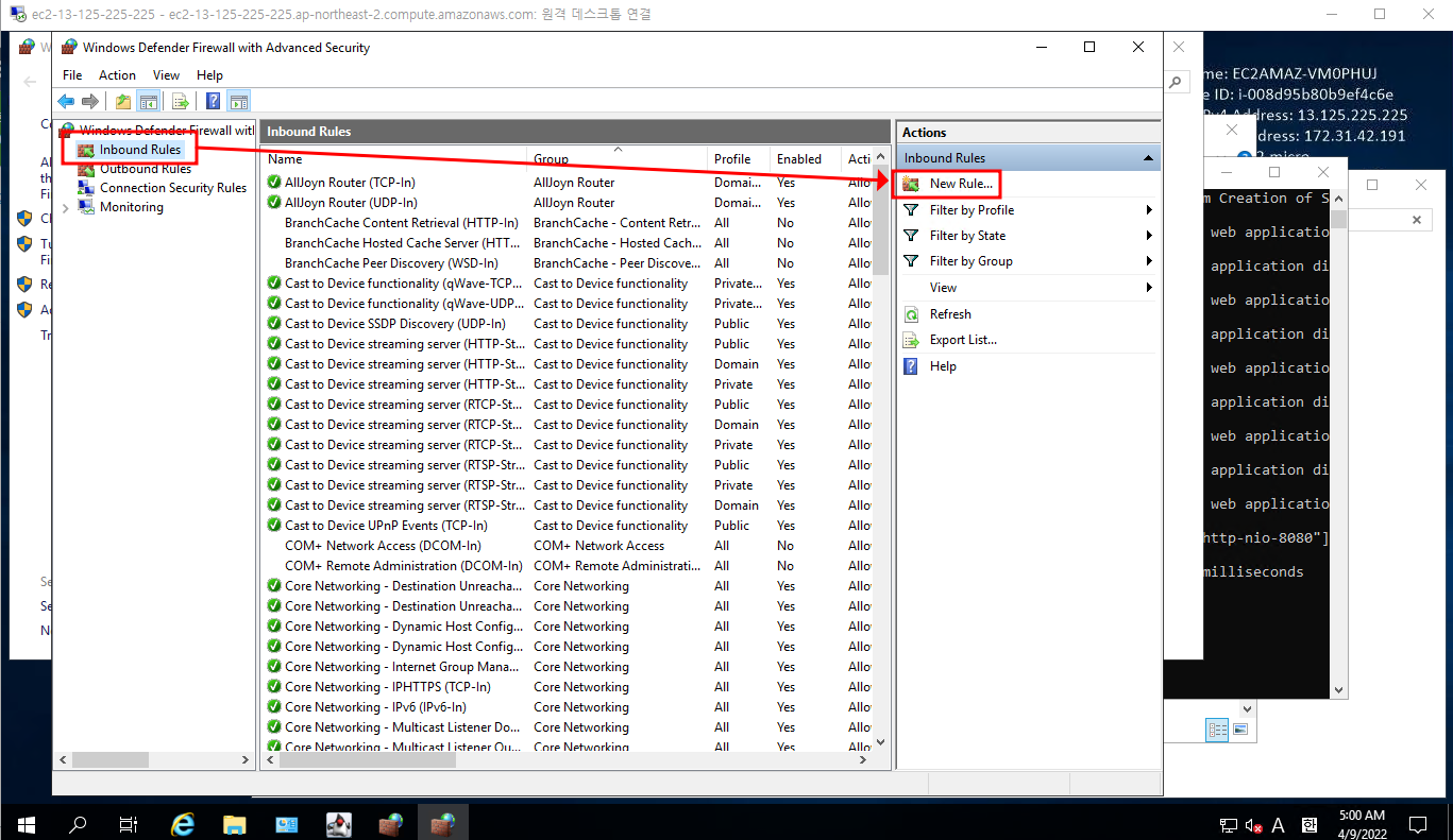여기까지 했으면 정상적으로 방화벽 설정 및 규칙 생성 완료