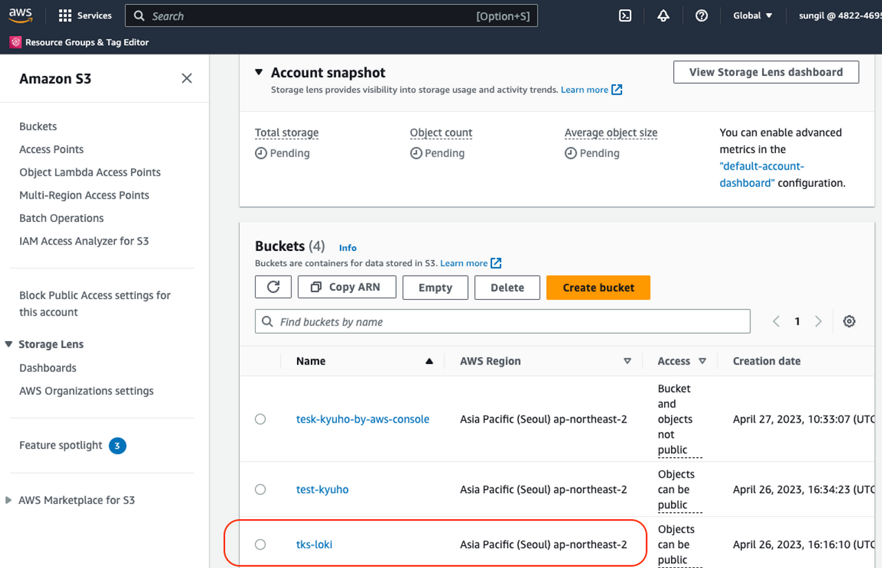 - 콘솔(https://console.aws.amazon.com/s3/)으로 이동