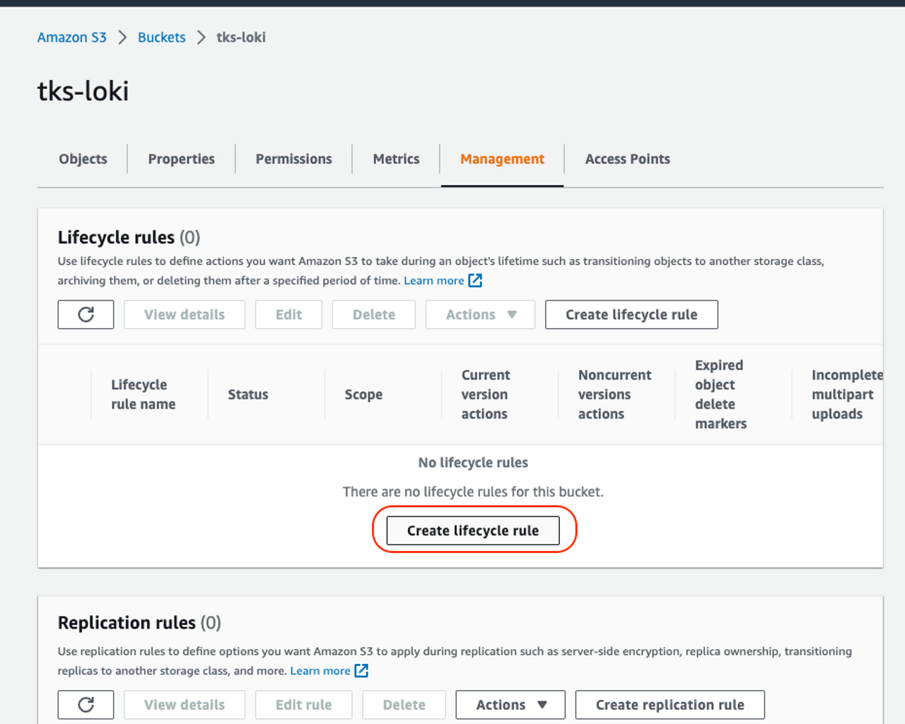 - lifecycle rule 생성하기 버튼을 통해 새로운 규칙을 정의