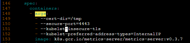 $ kubectl edit deploy -n kube-system metrics-server