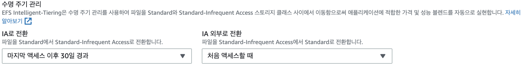 위의 내용 AWS에서의 가이드 주소 "Amazon EFS 파일 시스템 자동 마운트"에서 확인해 보세요.