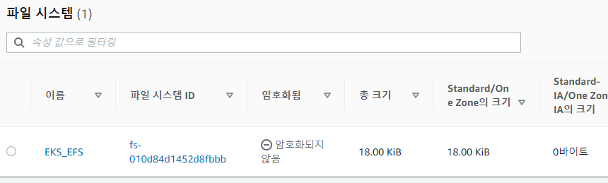 저는 위의 과정을 통해 EKS_EFS라는 EFS 스토리지를 생성하였습니다.