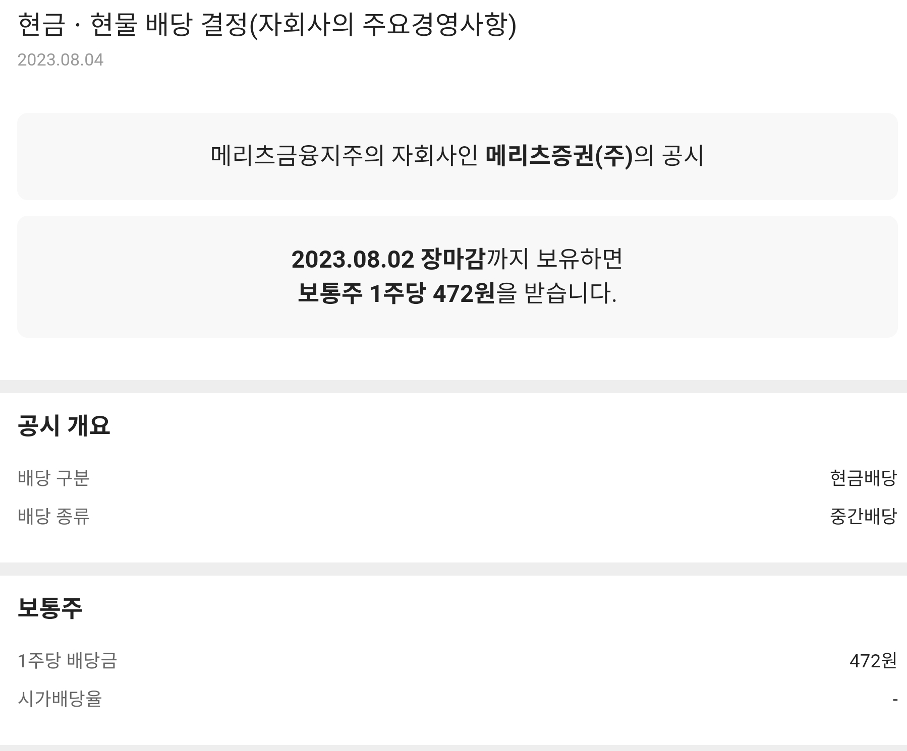 | [8/24] 메리츠금융지주 목표 주가 63,000원 돌파!! (7) | 2023.08.24 |