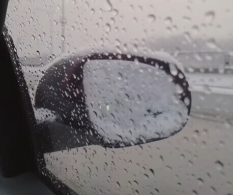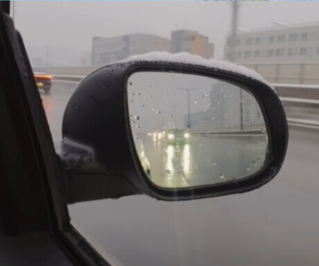 사이드 미러가 눈이나 비에 맞으면 이렇게 잘 보이지 않게 되어