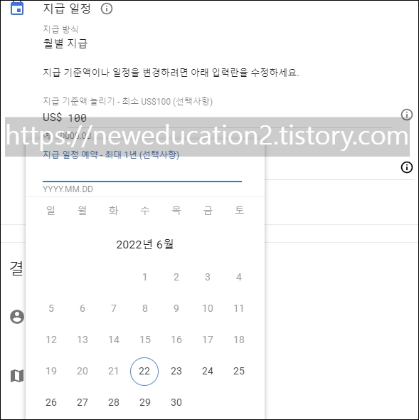 구글 지급 일정 안내문