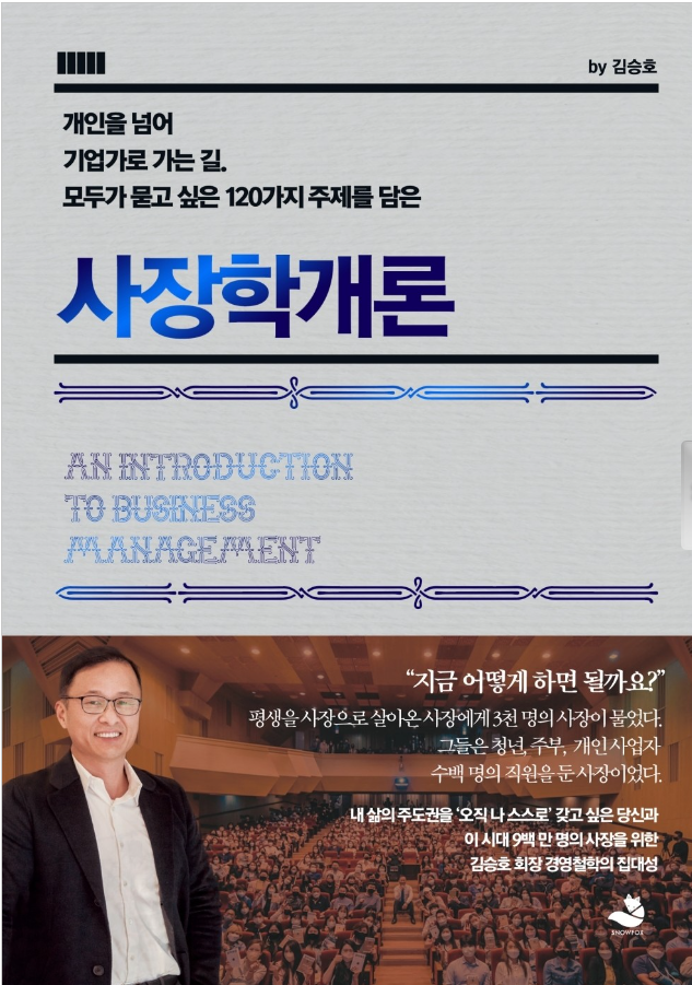 이 책은 한국과 미국, 전 세계를 오가며 ‘사장을 가르치는 사장’으로 알려진 『돈의 속성』의 저자 김승호 회장의 신간이다. 평생 사장으로 살아온 그의 경영철학 모두를 10여 년에 걸쳐 정리해 온 그는, 이번 『사장학개론』 책을 통해 120가지 주제로 그 내용을 모두 담아 완성했다. 지난 7년간 3천 명의 사장 제자들을 만나 [사장학 수업]을 진행하며 현실에서 겪는 다양한 문제에 대해, 사장들이 묻는 공통적인 어려움이 존재했으며 그 문제들을 목차로 구성해 방향제시를 더했다.