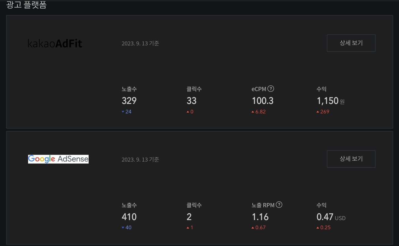 | [블로그 성장기] 애드핏 수익 - 9/11 !! (0) | 2023.09.12 |