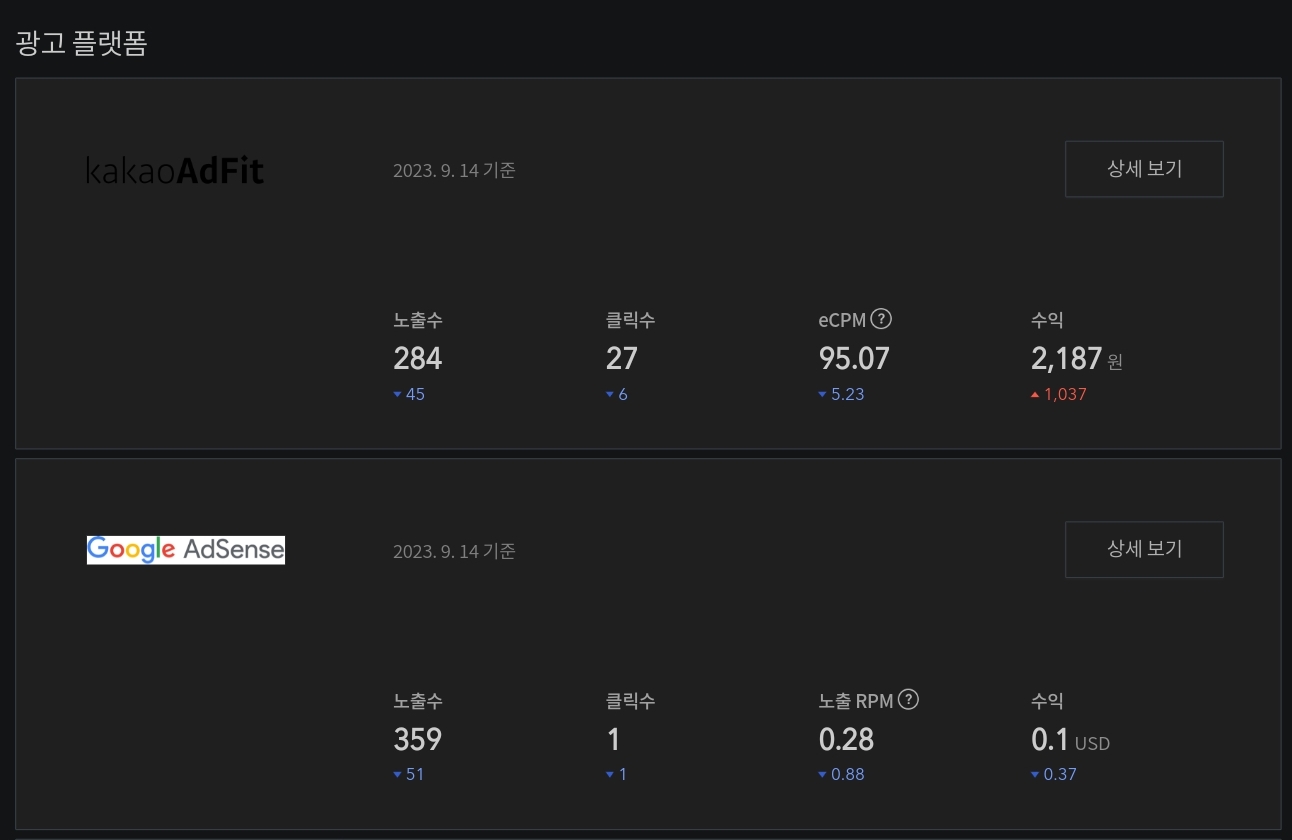 | [블로그 성장기] 애드핏 수익 - 9/11 !! (0) | 2023.09.12 |