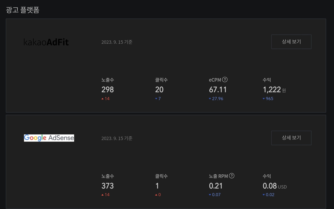 | [블로그 성장기] 애드핏 수익 - 9/11 !! (0) | 2023.09.12 |