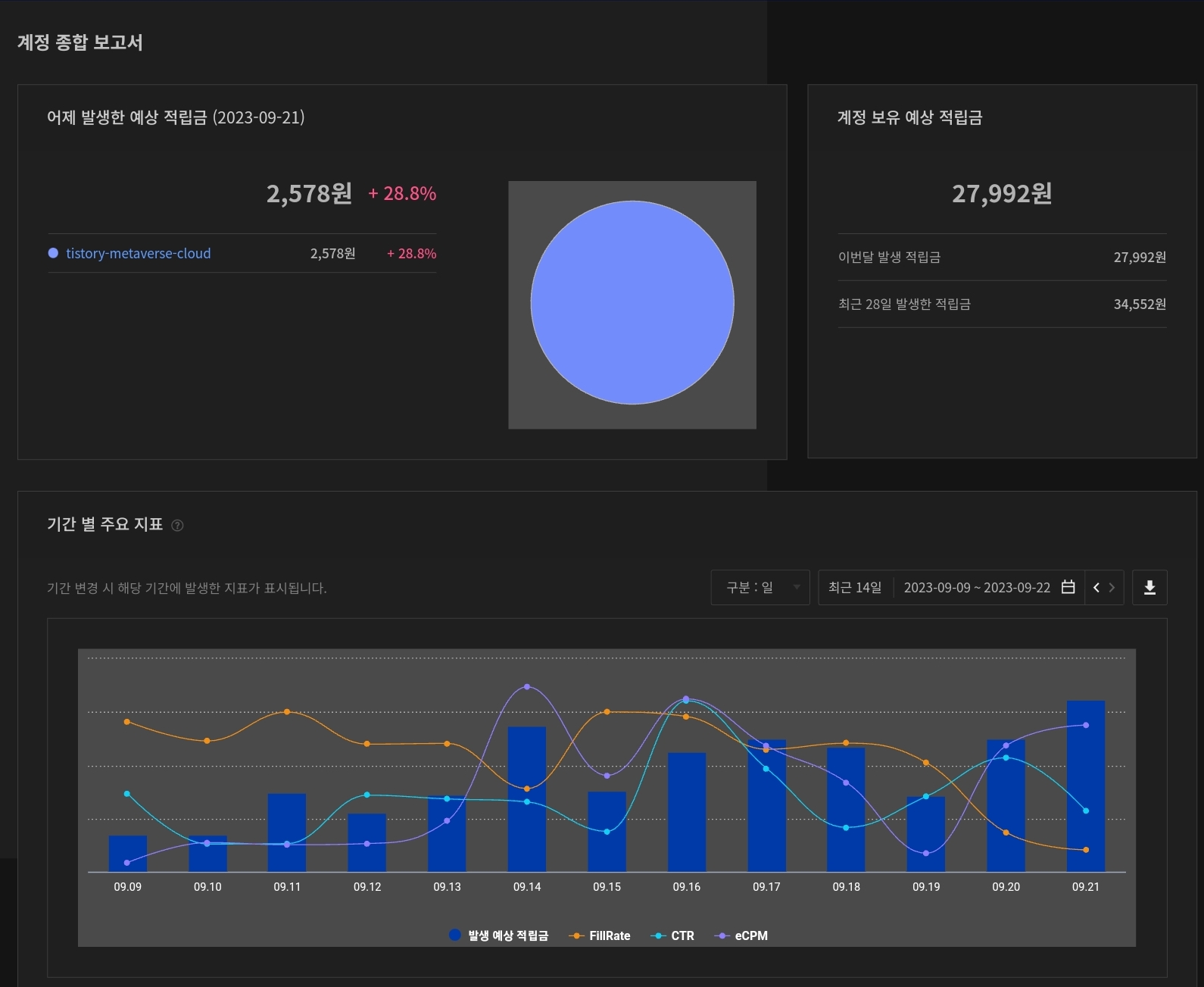 | [역행자 동기부여] 블로그 성장기 애드핏 수익 - 9/23 !! (28) | 2023.09.23 |