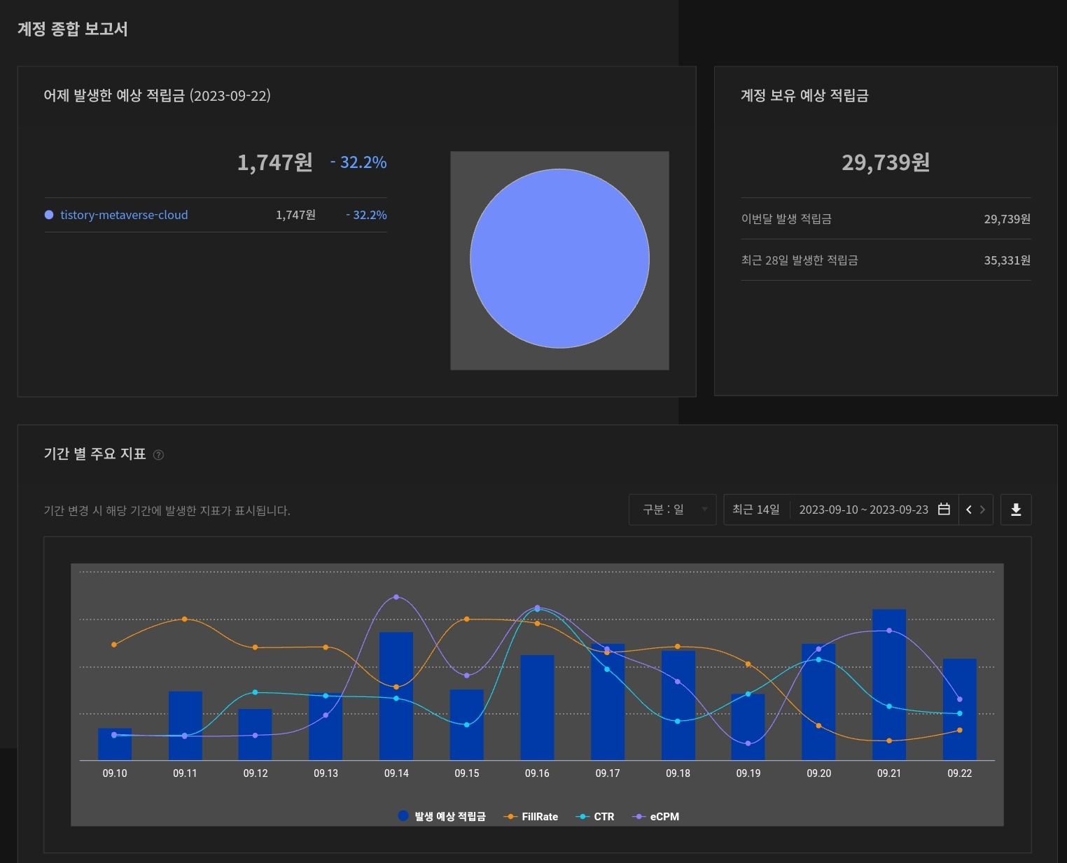 | [역행자 동기부여] 블로그 성장기 애드핏 수익 - 9/22 !! (29) | 2023.09.22 |