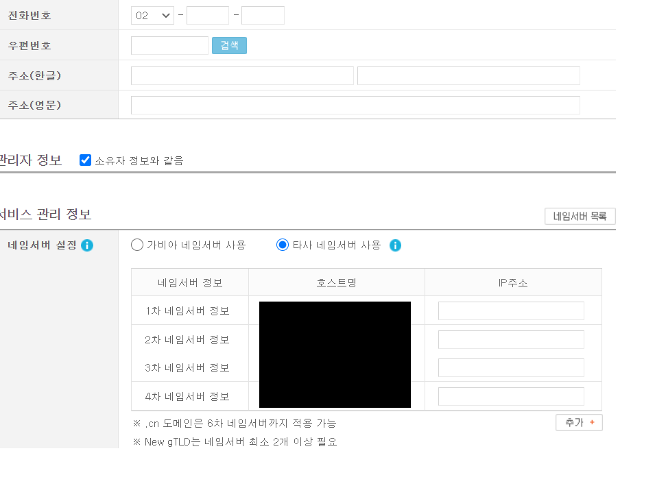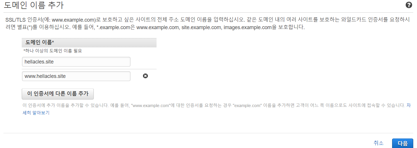 도메인 이름은 구입한 도메인과 서브 도메인을 모두 기입해준다.