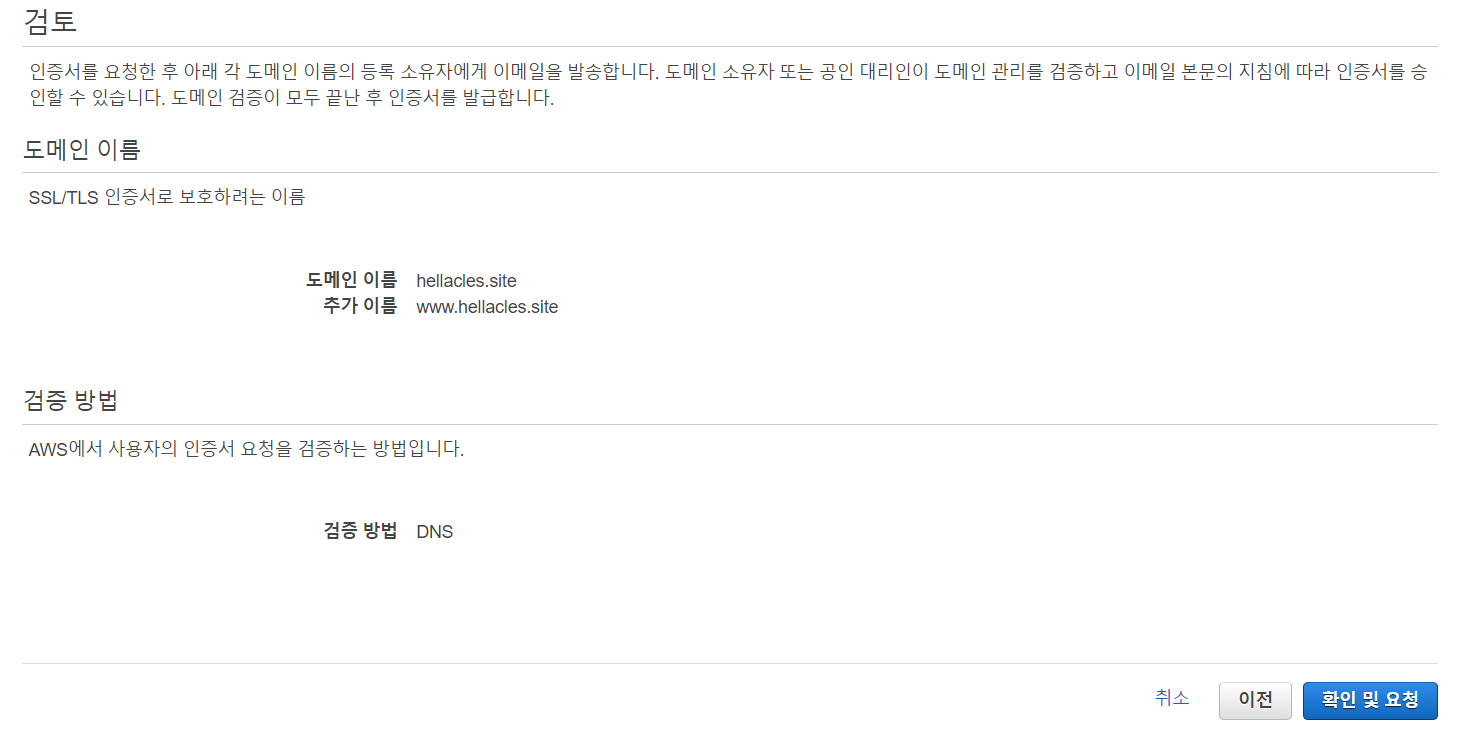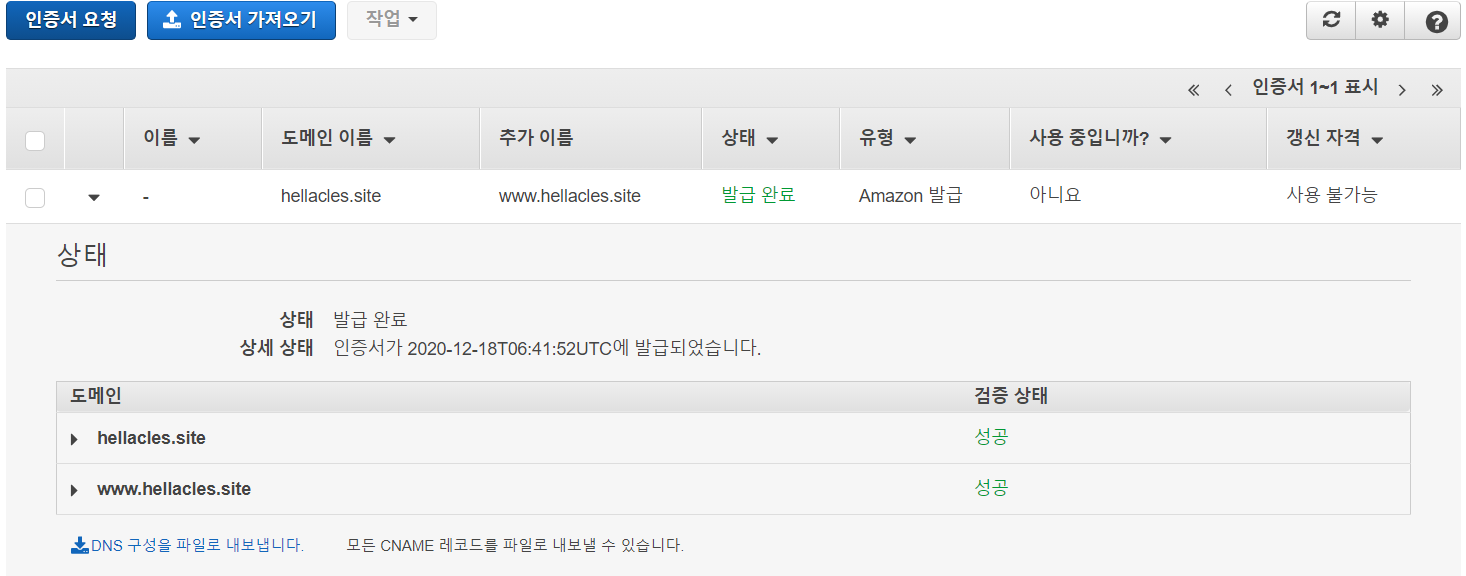 이후 시간이 지나면 ACM의 상태가 검증 보류 -> 검증 완료로 처리될 것이다.