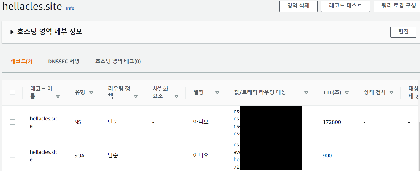 Route53 호스팅을 설정해주면 4개의 네임서버가 보일 것이다.
