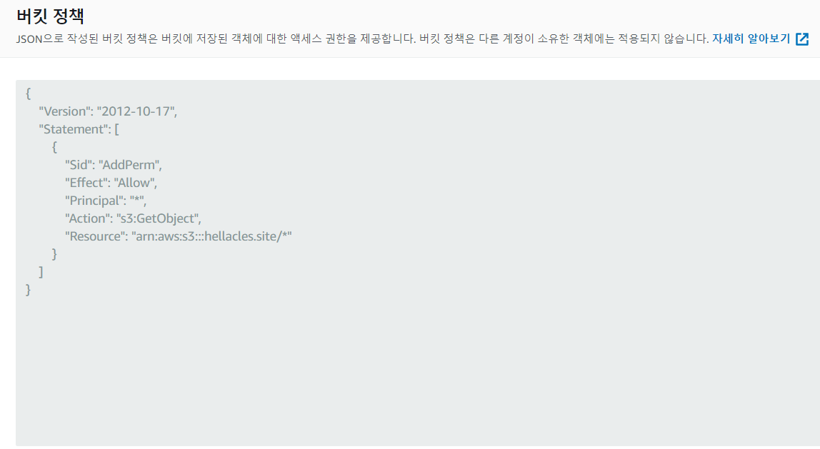 해당 버킷을 퍼블릭으로 사용할 수 있도록 정책을 설정해주었다.