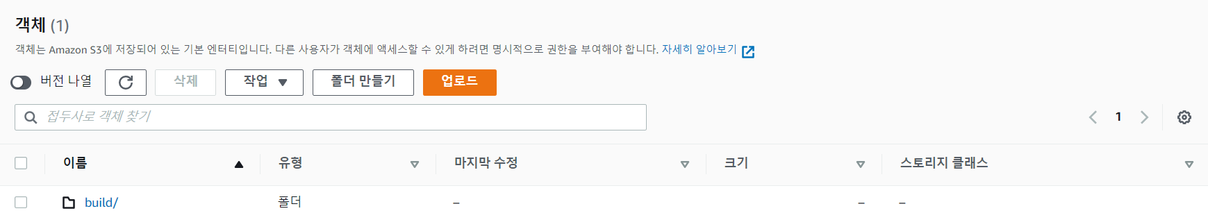 버킷에 실제 서비스할 빌드 내용이 담긴 폴더를 업로드 해주었다.
