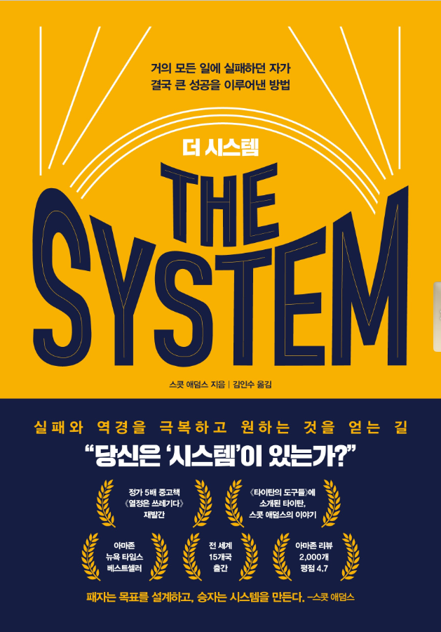 『타이탄의 도구들』의 타이탄, 스콧 애덤스의 이야기 전 세계 15개국 번역 출간 아마존 리뷰 2,000개 평점 4.7 자기계발 화제의 유튜버 ‘라이프해커자청’ 강력 추천 도서, 『열정은 쓰레기다』 재발간! “패자는 목표를 설정하고 승자는 시스템을 만든다” 거의 모든 일에 실패하던 자가 결국 큰 성공을 이루어낸 방법 전 세계 65개국 2,000여개 신문사에 실린 세계에서 가장 유명한 만화 ‘딜버트’의 작가 스콧 애덤스. 그는 『더 시스템』을 통해 “성공하려면 열정을 좇으라”는 자기계발서의 진부한 메시지를 뒤엎는다. 무조건 열정을 좇으며 포기하지 않는다고 성공하는 것이 아니며, 오히려 성공이 열정을 불러온다고 반박한다. 또한 그는 성공에 이르려면 ‘목표’가 아니라 ‘시스템’이 필요하다고 말한다. 그가 말하는 성공 모델은 개인적인 에너지에 집중하는 일부터 시작한다. 에너지를 끌어올린 후에는 성공에서 빠질 수 없는 ‘운’을 불러와야 하는데, 어떻게 운을 불러올 수 있는지를 ‘시스템’ 모델을 통해 제시한다. 그러면서 수많은 실패를 경험했던 자신의 이야기를 통해 실패를 불러들이고, 실패에서 배우고, 실패에서 배울 점을 뽑아먹을 때까지 그냥 돌려보내지 말라고 말한다. 수많은 실패에도 불구하고 어떻게 세계에서 가장 많이 연재된 만화의 창작자가 되었는지, 그 결과를 내기까지 어떤 시스템을 따랐는지 『더 시스템』에서 낱낱이 이야기한다. 자신이 목표하는 바에 항상 미치지 못한다고 생각한다면 스스로에게 이 책을 선물하길 바란다. 패배주의에서 벗어나고, 운을 끌어들이는 삶을 살게 될 것이다. |