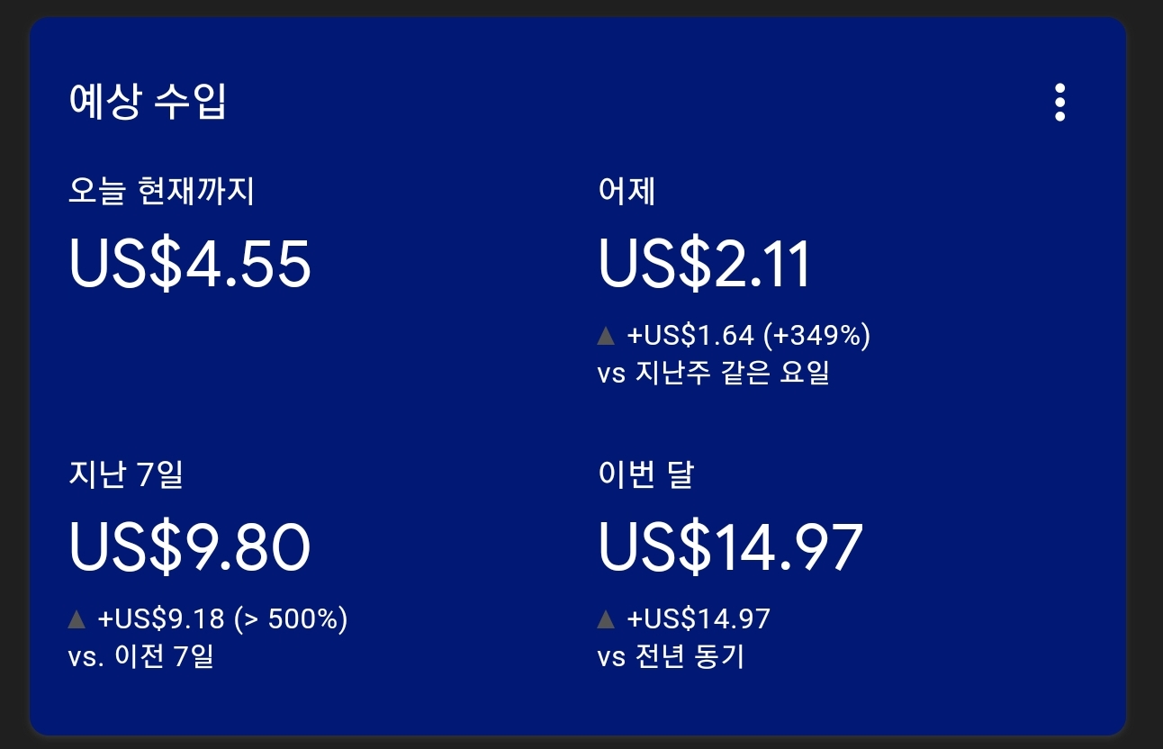 | [역행자 동기부여] 블로그 성장기 애드핏&애드센스 수익 - 10/24 !! (64) | 2023.10.24 |