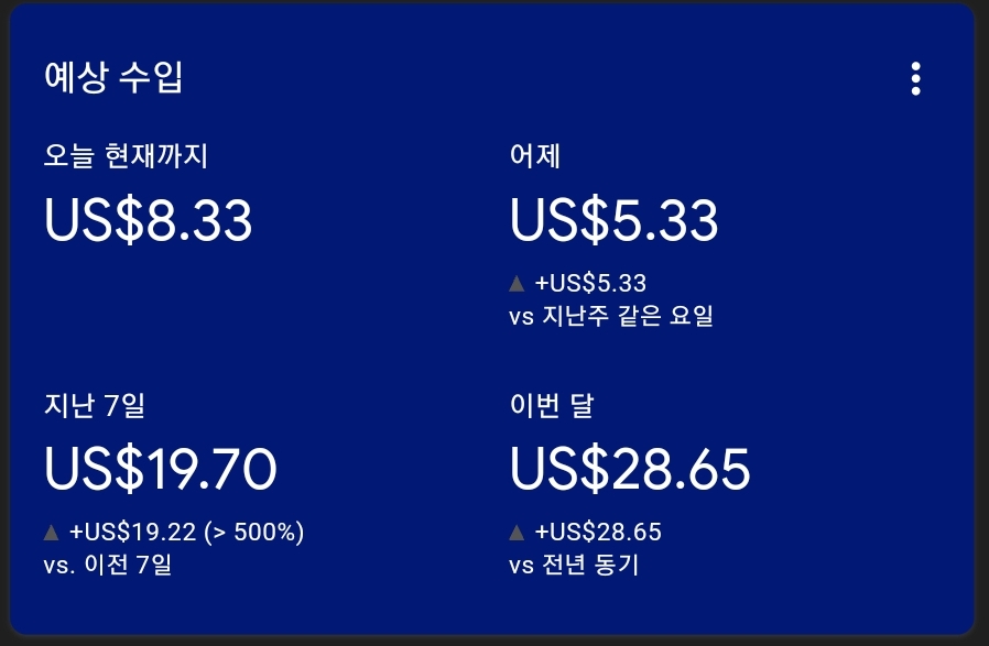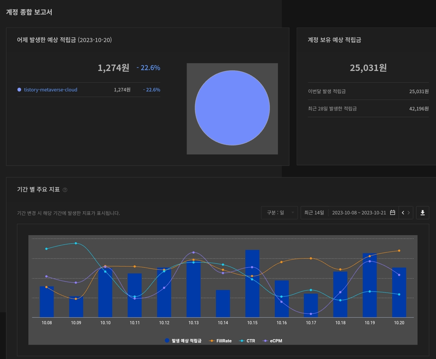 | [역행자 동기부여] 블로그 성장기 애드핏&애드센스 수익 - 10/25 !! (73) | 2023.10.25 |