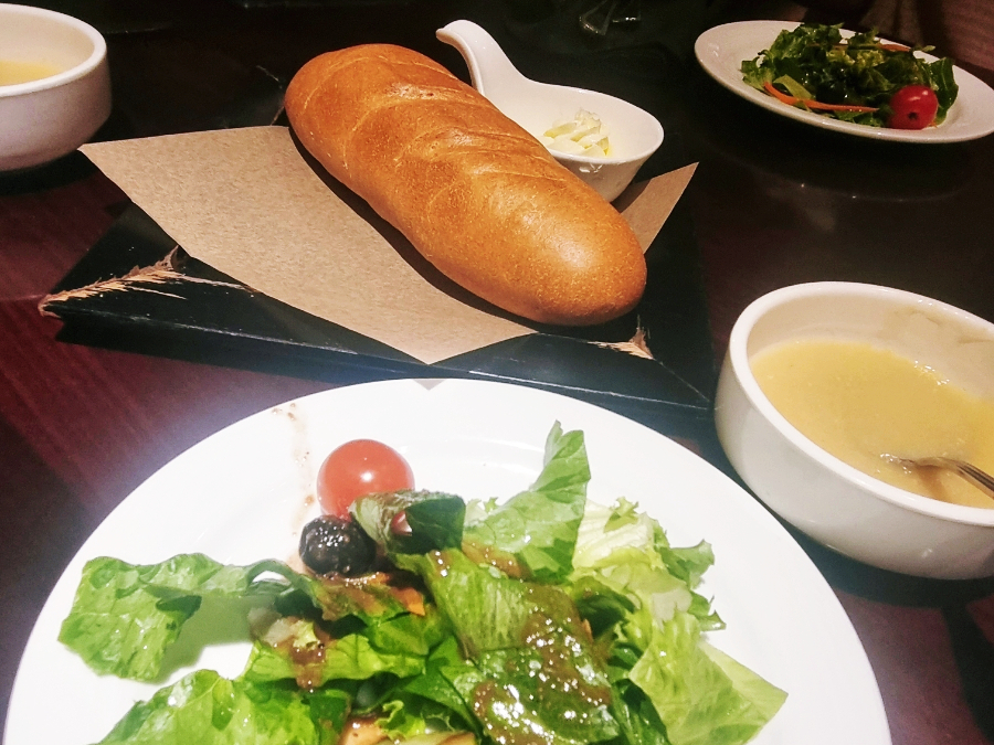 스프, 식전 빵, 샐러드도 같이 나와요.