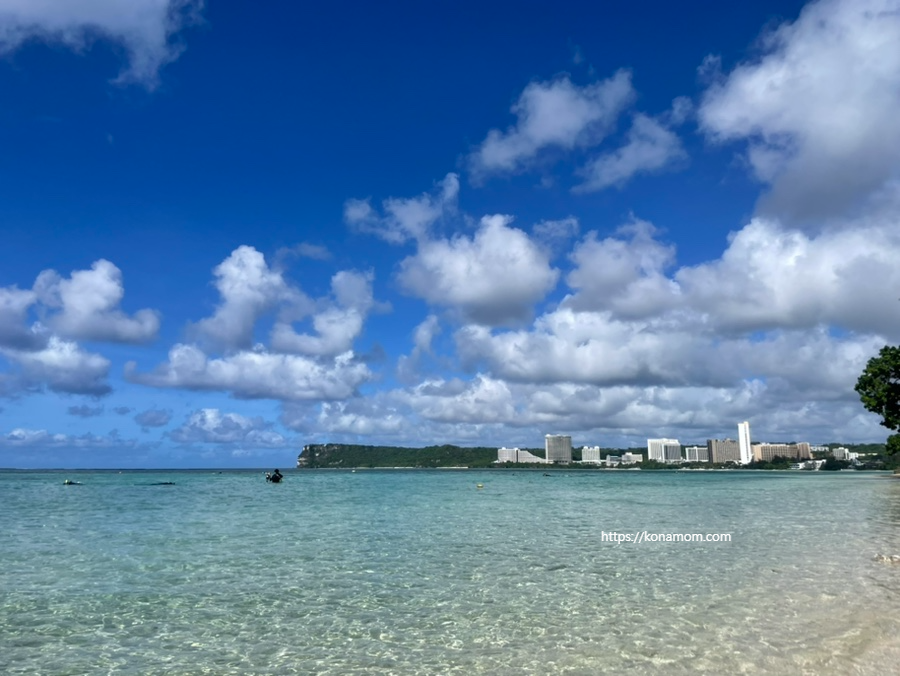 괌 PIC앞 비치! 물이 얕고 깨끗해서 아이들이 놀기 좋았습니다.