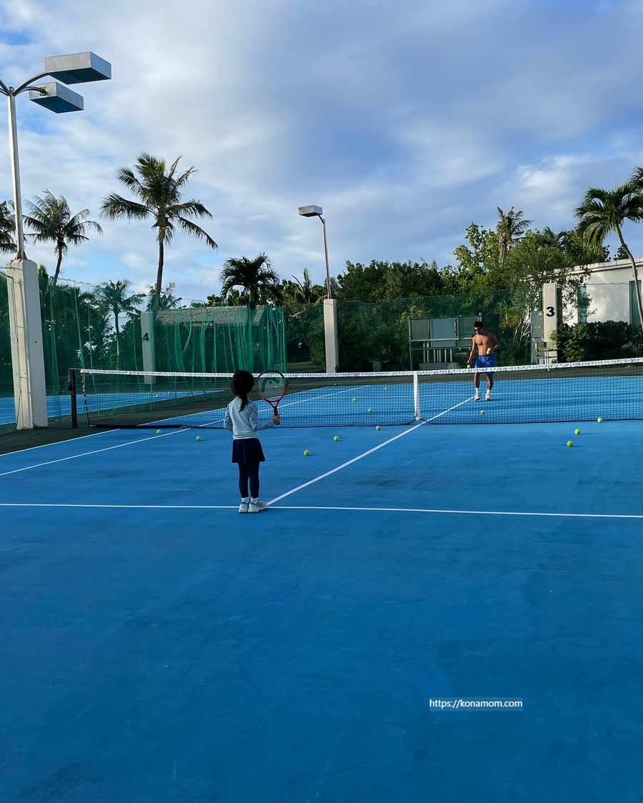 PIC괌에는 테니스코트도 있습니다! 하드코트이고 두 면이나 있는데, 다들 이용을 안 하셔서 저희 가족은 매일 이용했습니다. 레슨도 미리 신청하면 되는데, 코칭해 주시는 분이 테니스 강사분은 아니고 공 던져 주시는 정도지만 아이가 아주 좋아했습니다.(라켓, 공, 신발 등 대여 가능하나 시간이 정해져 있고 이왕이면... 본인 것을 이용하는 게.. 저는 라켓, 공, 신발 다 챙겨 갔습니다.)