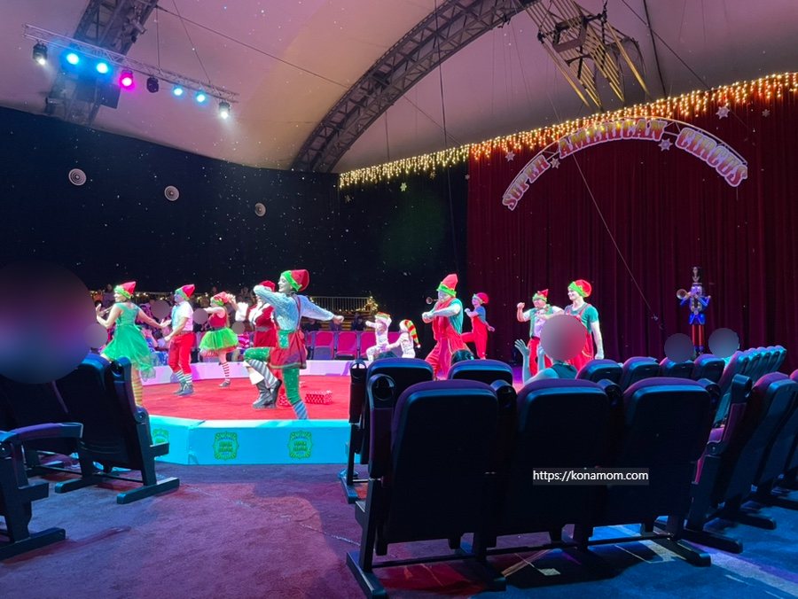 12월에 방문해서 서커스에서도 크리스마스 분위기였는데요, 아이도 저희도 아주 재밌게 봤습니다.