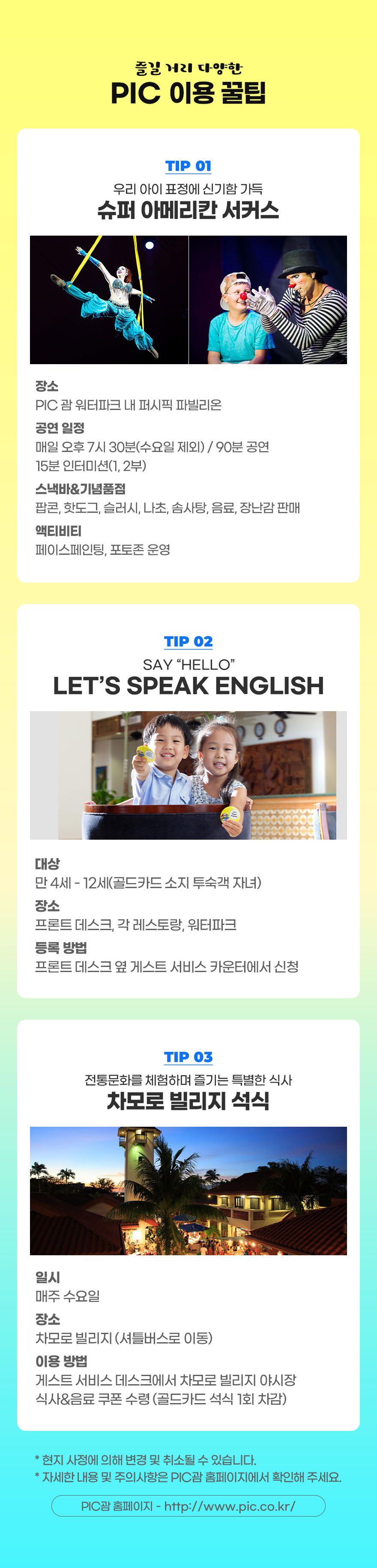 - 아메리칸 서커스 1회 포함 (리조트 체크인 후 예약 필수)