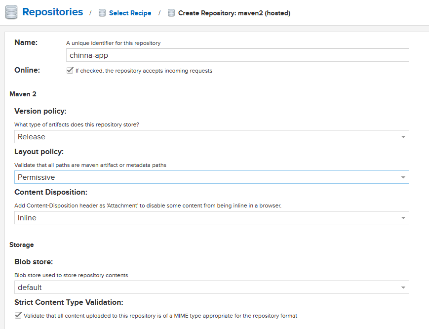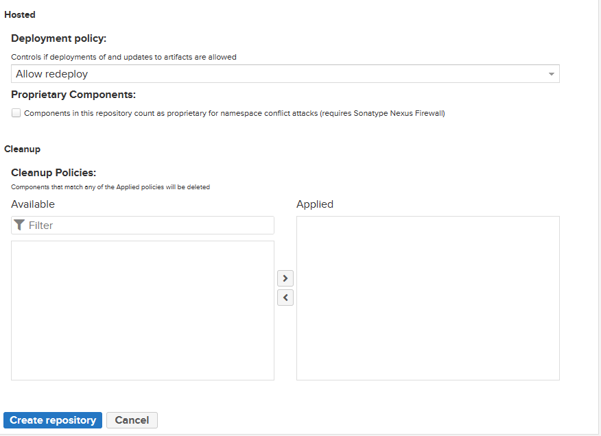 - Create Repository 클릭 --> maven2 (hosted) 선택