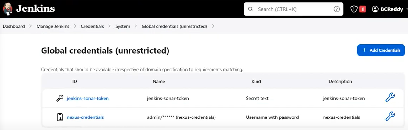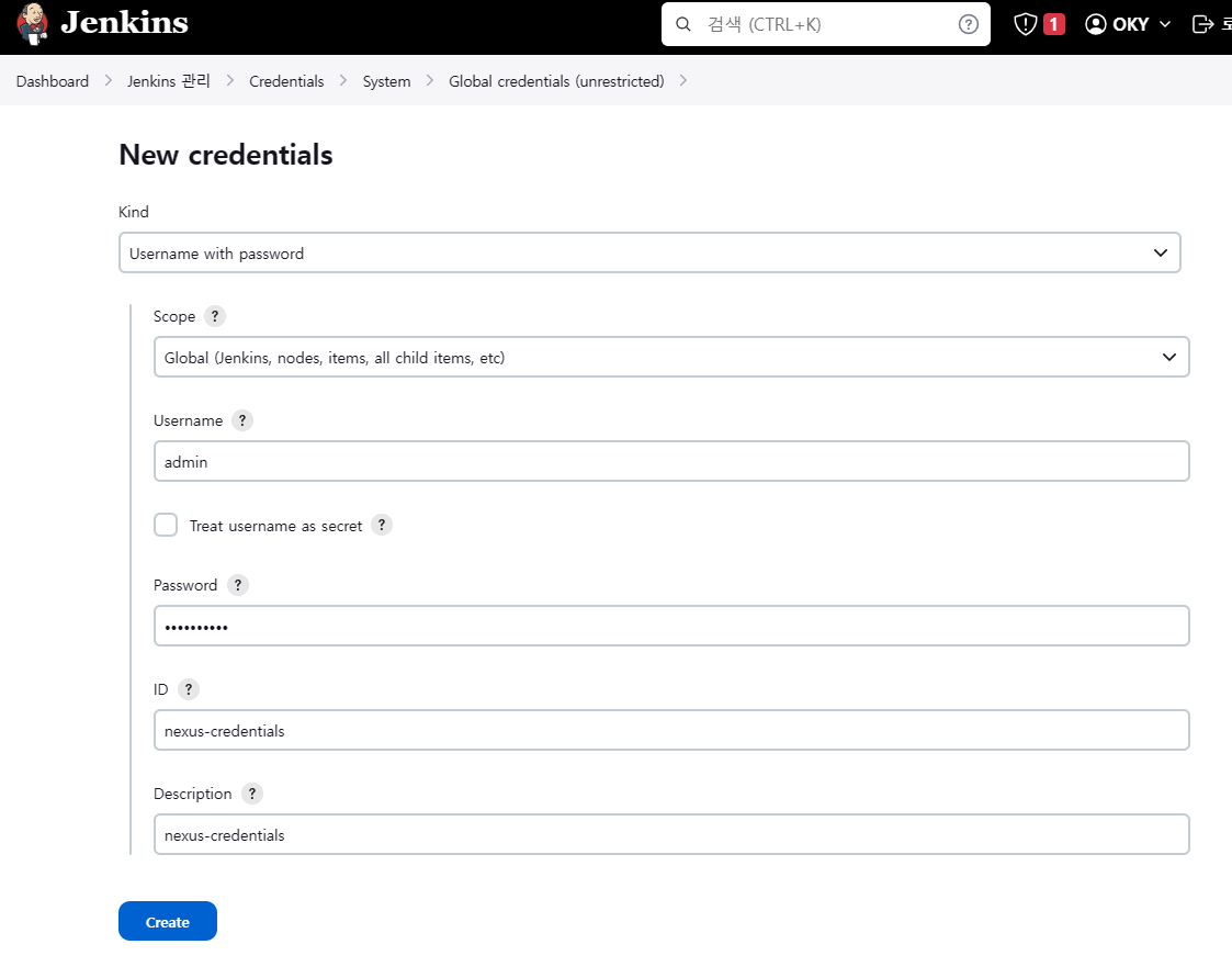- 젠킨스와 Nexus 연동을 위해 Credentials 이동