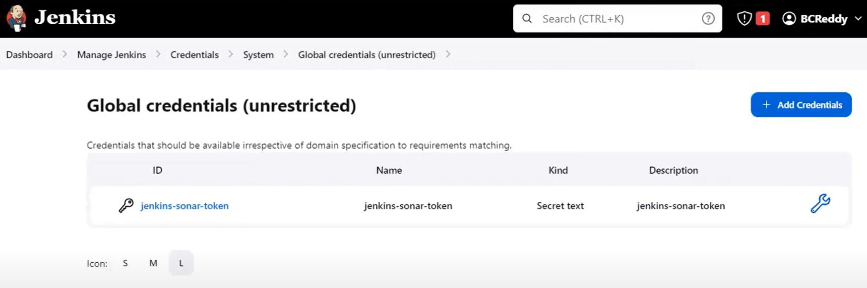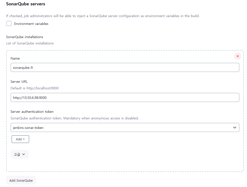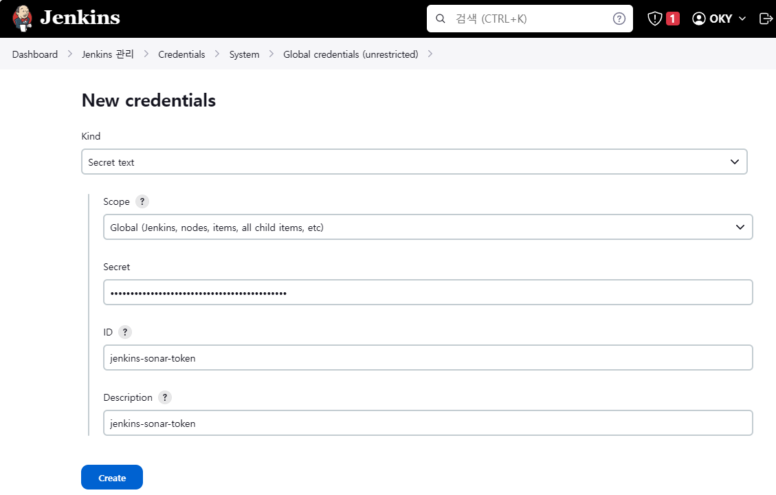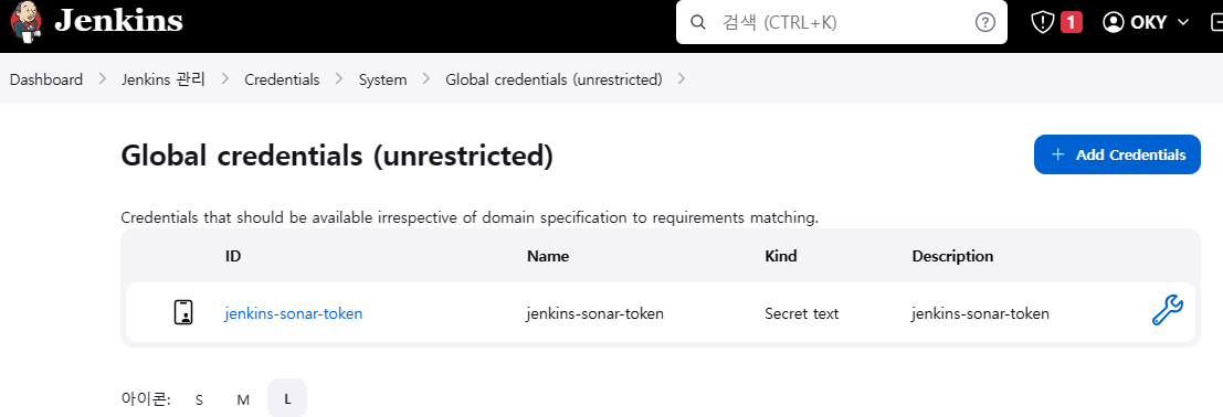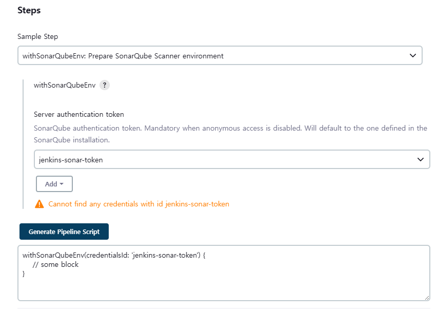 : ID --> jenkins-sonar-token (다르면 안됨)