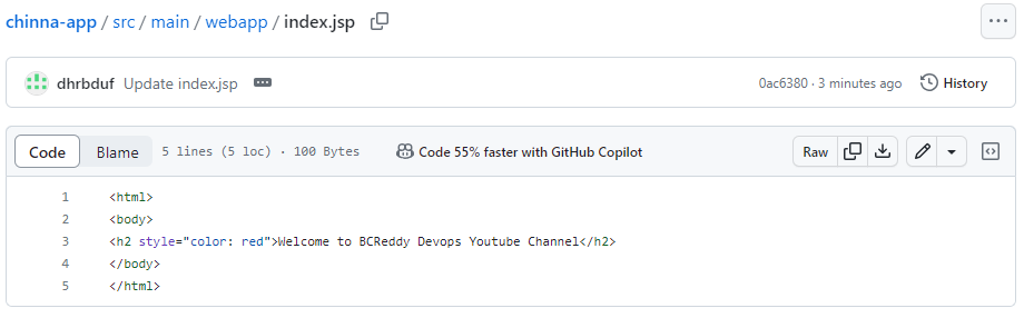 git url:'https://github.com/bcreddydevops/chinna-app.git',branch:'main'