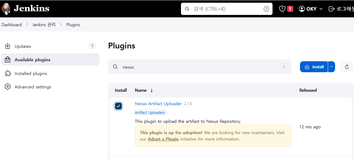 ## 젠킨스와 Nexus 연동을 위해 플러그인 설치