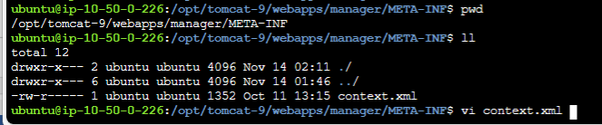 ubuntu@ip-10-50-0-226:/opt/tomcat-9/conf$ vi tomcat-users.xml