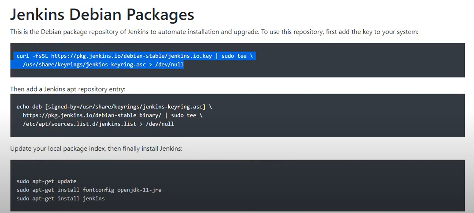 ## 그런 다음 Jenkins apt 저장소 항목을 추가합니다.