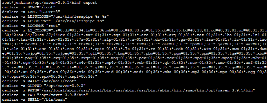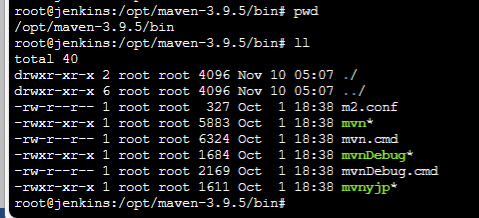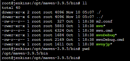 root@jenkins:/opt/maven-3.9.5/bin# export PATH=$PATH:/opt/maven-3.9.5/bin