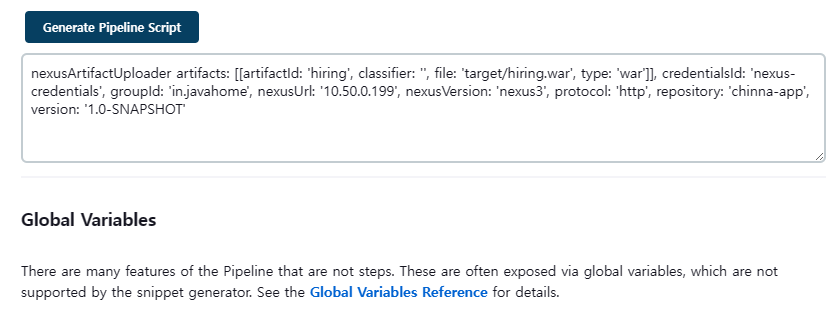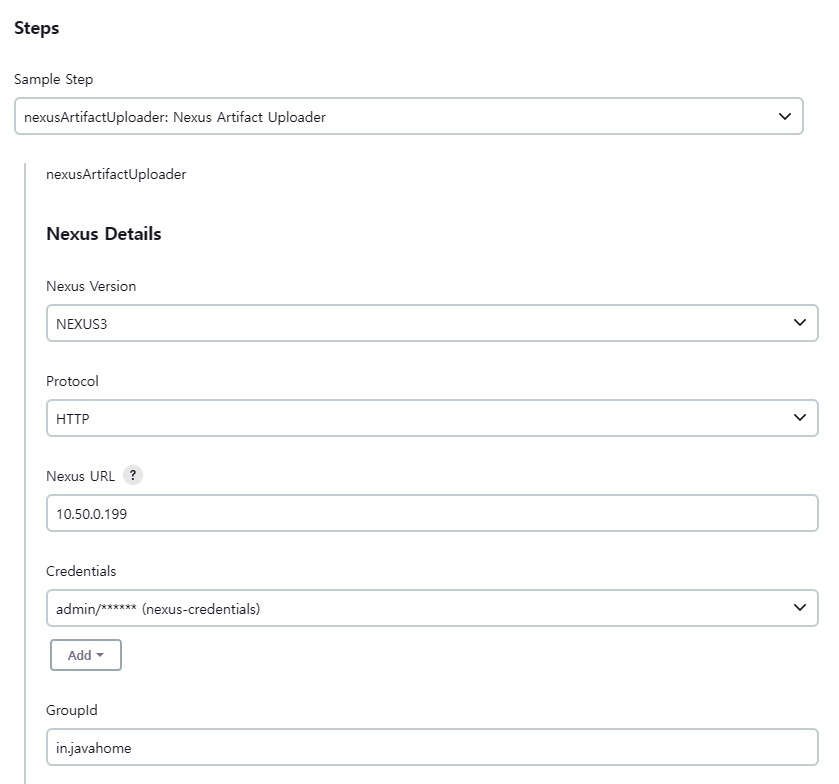nexusUrl: '10.50.0.199:8081', (PrivateIP 사용해도 업로드 가능, 보안그룹 오픈 필요)