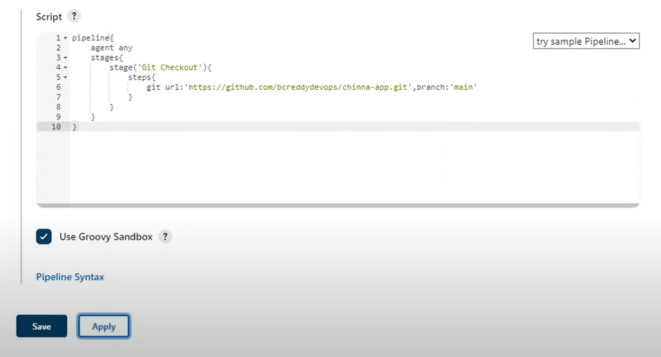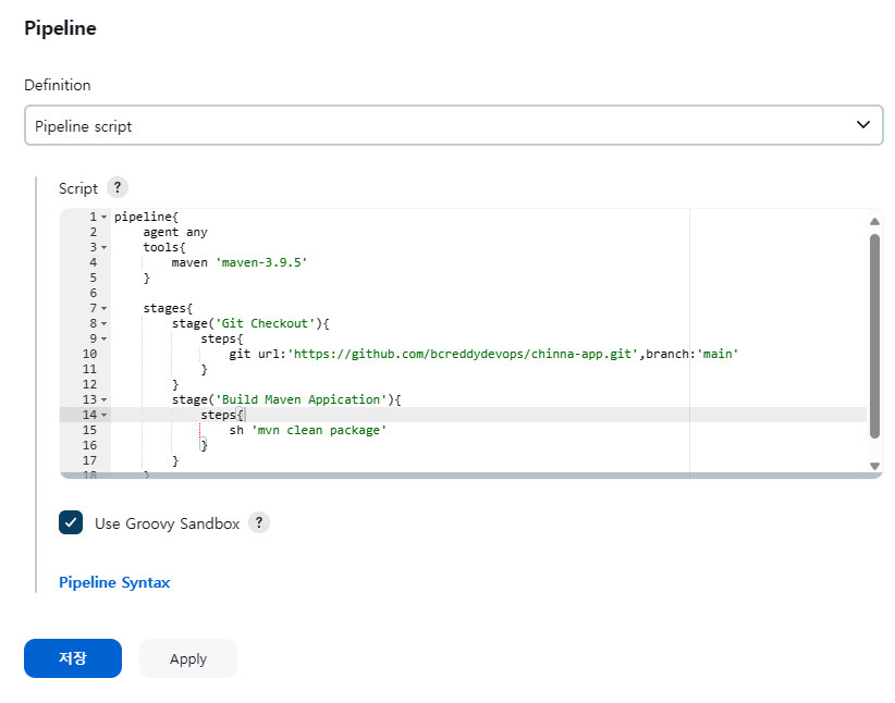 - Pipeline Syntax 클릭 (양식 복사)