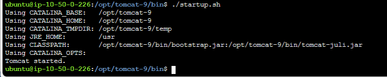 ubuntu@ip-10-50-0-226:/opt/tomcat-9/bin$ ./startup.sh