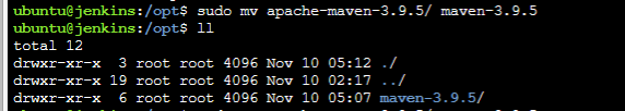 ubuntu@jenkins:/opt$ sudo mv apache-maven-3.9.5/ maven-3.9.5