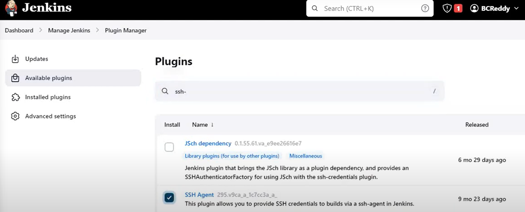 - 젠킨스에 ssh 에이전트 플러그인 설치