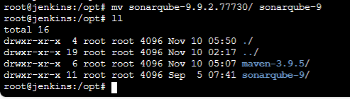 root@jenkins:/opt# mv sonarqube-9.9.2.77730/ sonarqube-9