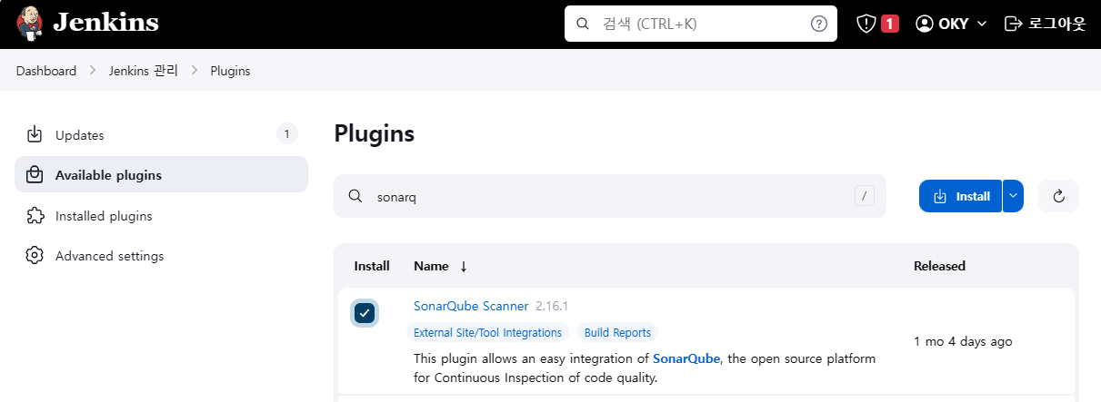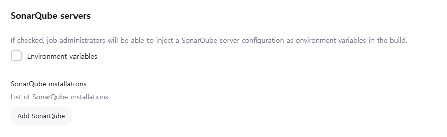 - SonarQube Scanner 플러그인 설치