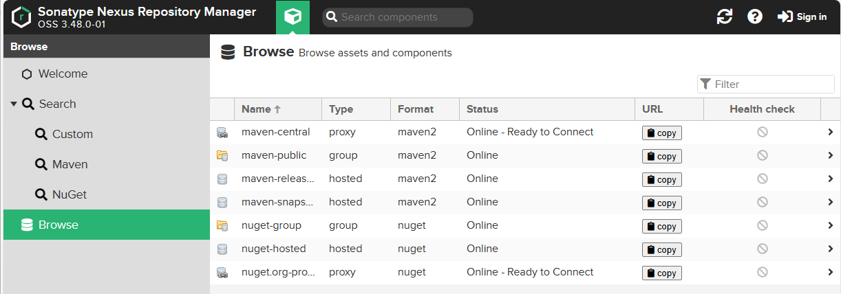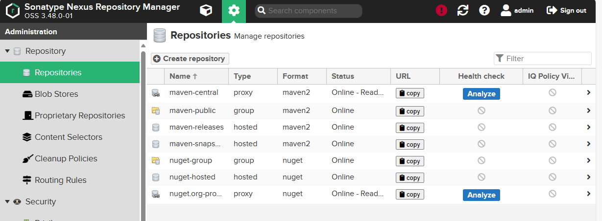 - Nexus 실행 (기본포트 8081 사용)