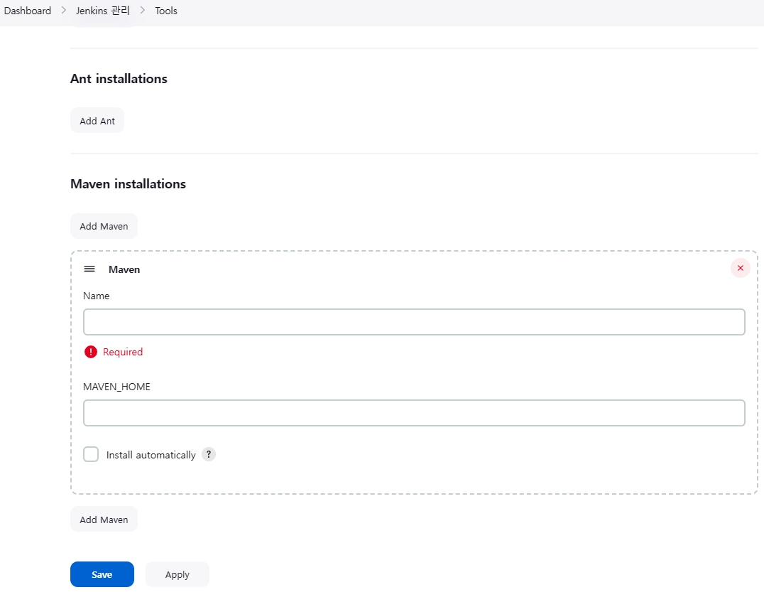 - Maven 프로젝트 빌드하기 위해 Global Tool Configuration 이동