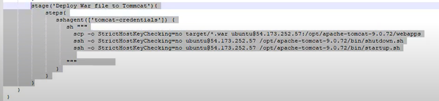 scp -o StrictHostKeyChecking=no target/*.war ubuntu@10.50.0.226:/opt/tomcat-9/webapps