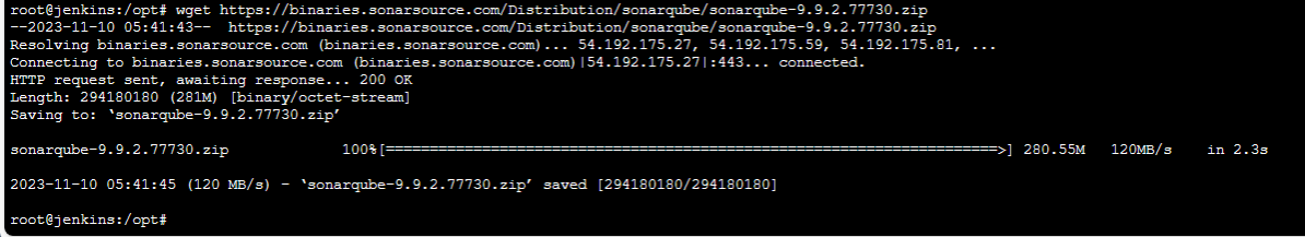 root@jenkins:/opt# wget https://binaries.sonarsource.com/Distribution/sonarqube/sonarqube-9.9.2.77730.zip