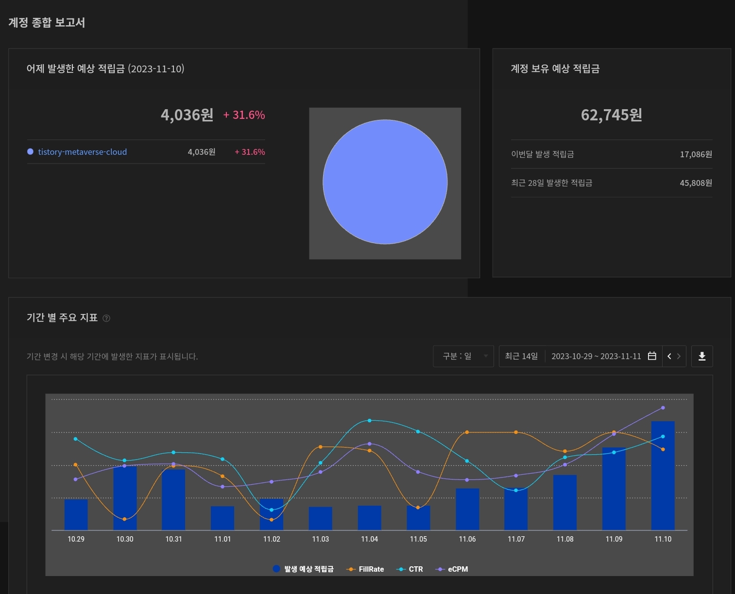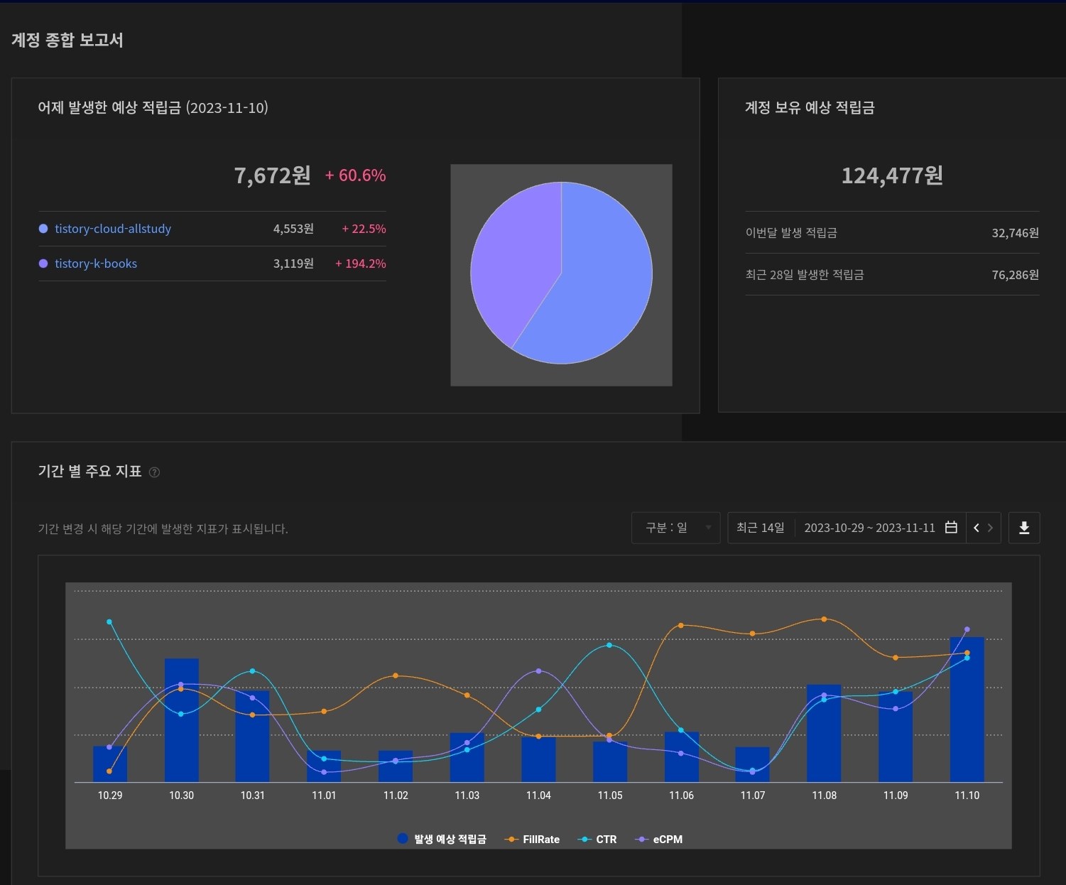 | [역행자 동기부여] 블로그 성장기 애드핏&애드센스 수익 - 11/7 !! (35) | 2023.11.07 |