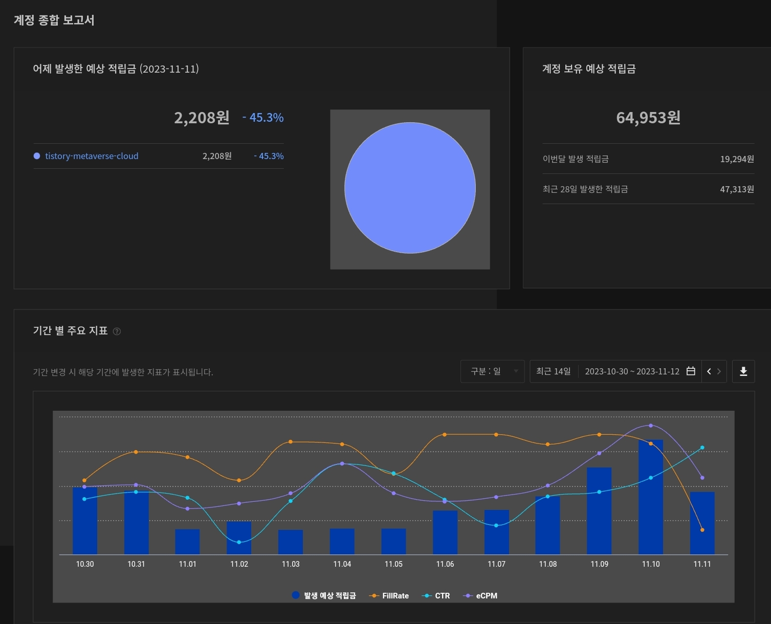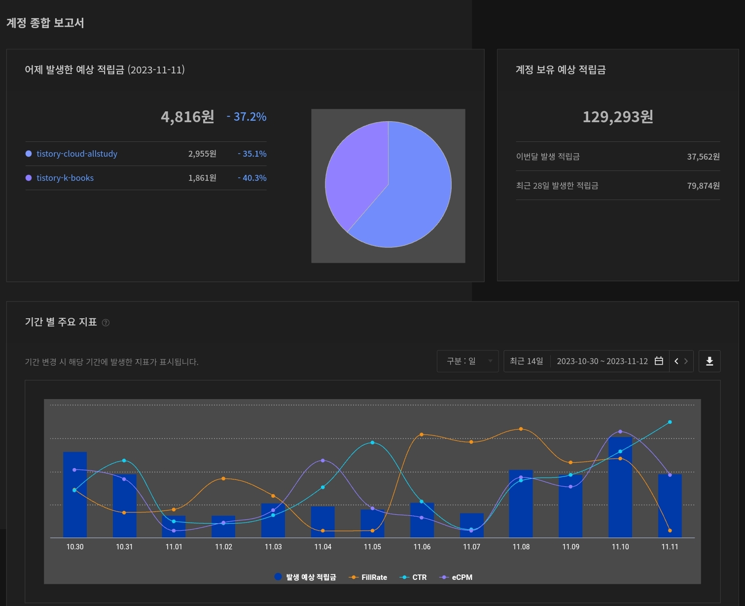 | [역행자 동기부여] 블로그 성장기 애드핏&애드센스 수익 - 11/15 !! (42) | 2023.11.15 |