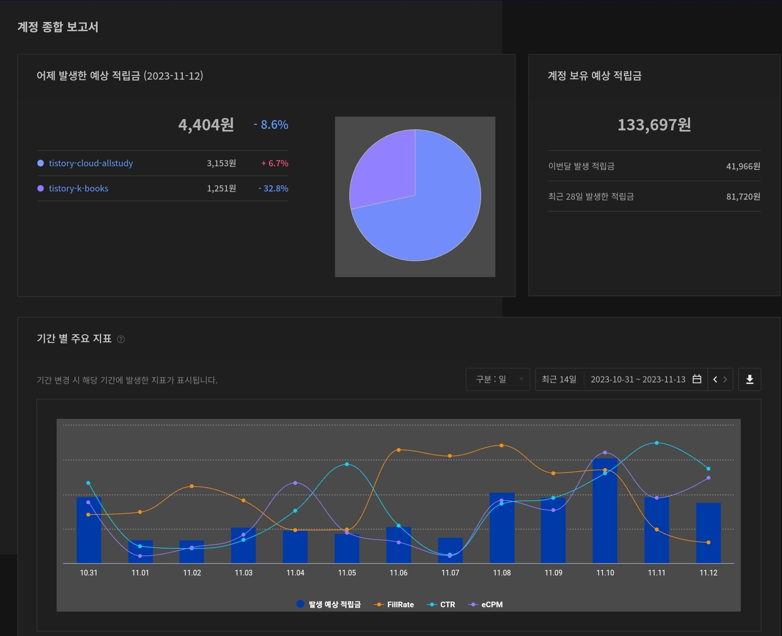 | [역행자 동기부여] 블로그 성장기 애드핏&애드센스 수익 - 11/14 !! (34) | 2023.11.14 |